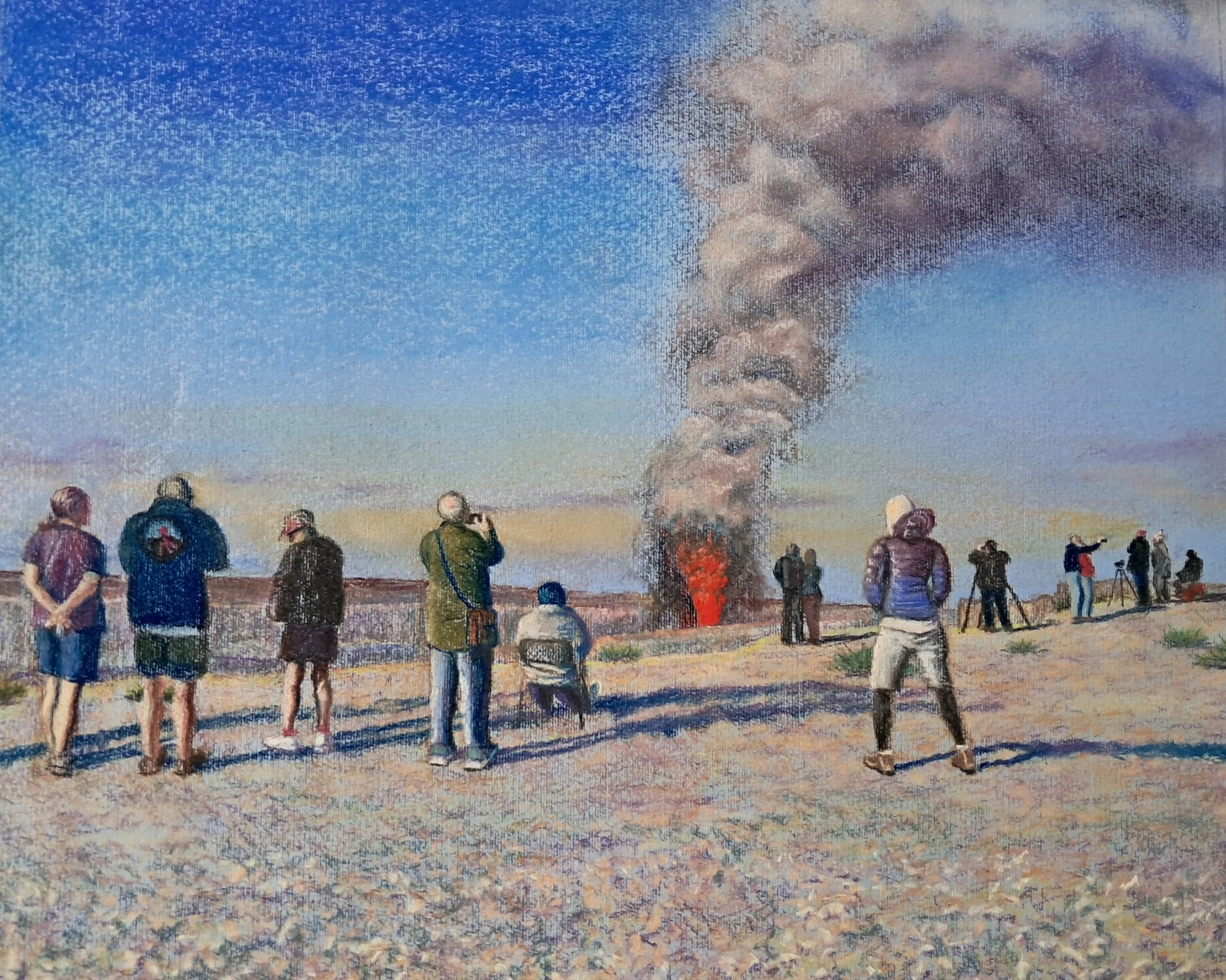 sightseers at an early morning kilauea eruption - wayne takazono